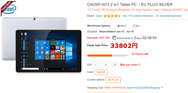 Surface Bookと同じサイズ感、物理キーボード取り付けもOK、スタイラスペンもサポートするといったオールインワンマシンなのにお値段はかなりお安い!CPUは他の中華タブより若干良いApollo Lakeを搭載しており、軽めの動作を目的としているならSurface Bookの代わりに使うのもありかも知れません。
