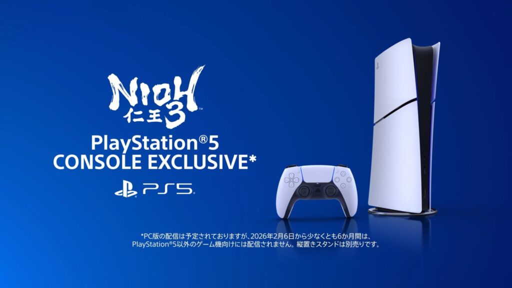 プレイステーションが公開した『仁王3 PS5機能トレーラー』の最後には『PC版の配信は予定されていますが、2026年2月6日から少なくとも六ヶ月間は、PlayStation 5以外のゲーム機向けには配信されません。』と表記されており、ソニーとの契約による時限独占期間は半年であることが明らかになっています。