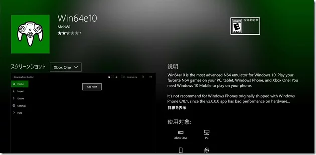 Win64e10がXboxOneからダウンロード可能になっています。