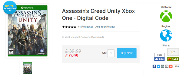 1789年のパリ、フランス革命期を背景にしたアサシンクリードの意欲作、アサシンクリードユニティのXboxOneデジタルコードが0.99ポンドのセール価格で販売されています。