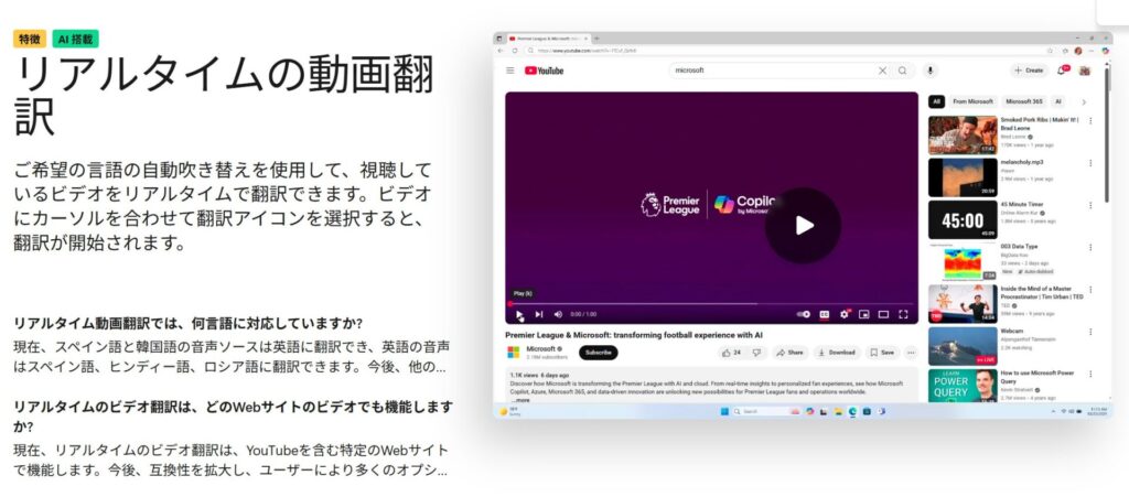 Edgeのライブ音声翻訳について