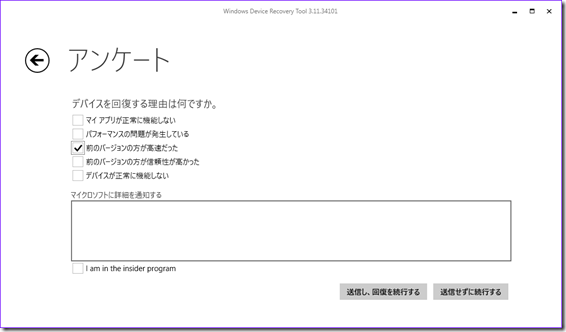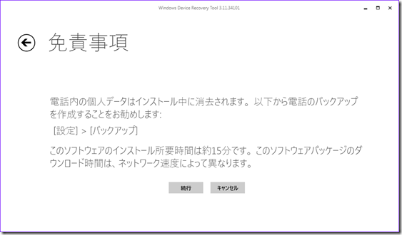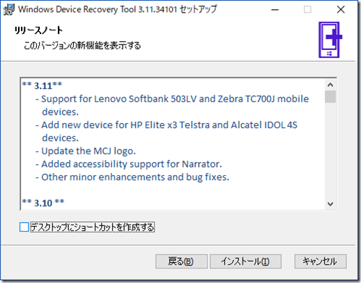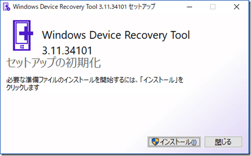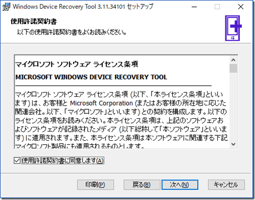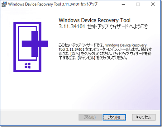Windows Device Recovery toolのインストーラを実行すると次のような画面になります。