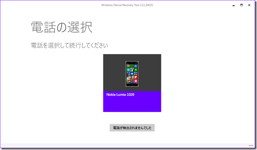 Windows Device Recovery Toolを起動してUSBで電話を接続するとこのような画面になります。