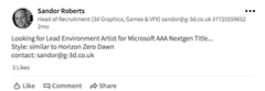 募集内容はリード環境アーティストでAAAの次世代ゲームタイトルになります。