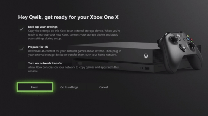 これはXbox Oneの外付けドライブに古いコンソールの設定データをコピーするかインターネット上にアップロードすることで、新しいコンソールに繋ぐことでデータを転送することが出来るというものです。