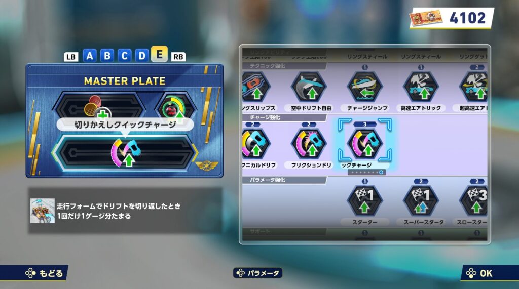 - ブースト:パワースライドやトリックに強いが、攻撃を受けると大きく減速