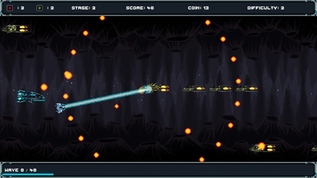 クラシックなスペースシューターの復活!宇宙を駆け抜ける壮大な旅に出て、13の激しいステージで宇宙海賊の大群と対峙しましょう。敵を倒してアップグレードオーブを集め、ショップで使いながら船を進化させ、ダメージやライフ、そして狂気じみた速度を上げましょう。戦略と鋭い反射神経が求められる巨大なボスとの戦いです。勝利の一つ一つが星間での栄光への近づく!