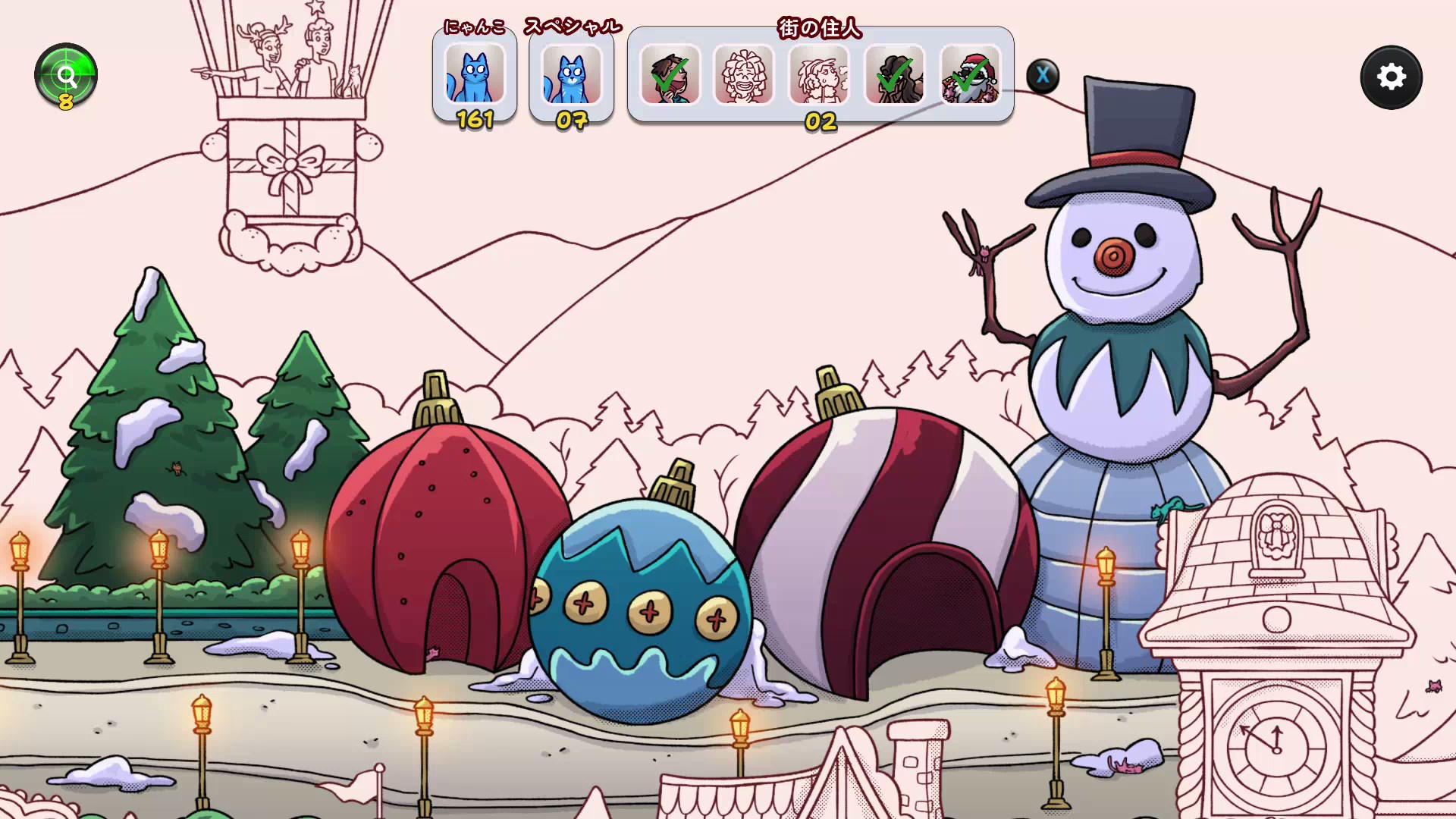 隠れ猫たちが魔法のクリスマス・ワールドパークでホリデーを祝っています!雪と灰色のキャンバスから始め、世界の伝統にインスパイアされた900匹以上の隠れた子猫やキャラクターが登場し、華やかな色彩に染まります。Hidden Catsコミュニティの実在猫の写真を発見し、イラスト入りの猫と組み合わせると、新しいプログレッシブカラー化効果を備えた7つのボーナスステージがアンロックされます!