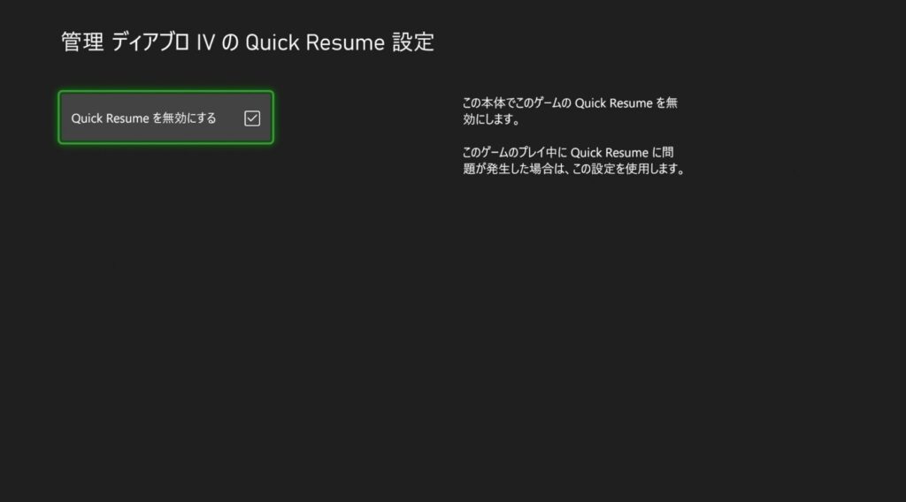 そんなクイックレジュームですが、オンライン要素が強いゲームタイトルでは再接続する必要があるためにクイックレジュームがあまり意味がない場合があったり、クイックレジュームと相性が悪いゲームもありました。
